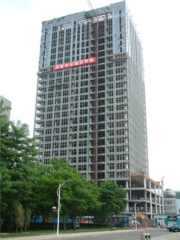 五峰國際大廈是集寫字樓與公寓的綜合一體性建筑。該工程位于太原市高新技術(shù)開發(fā)區(qū)振興街9號,由山西五峰建設(shè)發(fā)展有限公司興建,海南偉業(yè)建筑裝飾工程有限公司承攬外立面整體裝飾工程,包含玻璃幕墻、鋁塑板幕墻、避雷網(wǎng)線、玻璃幕墻防火隔離層、保溫墻等。幕墻施工面積近萬平方米。