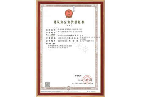 裝飾、幕墻一級資質(zhì)證書(正本)